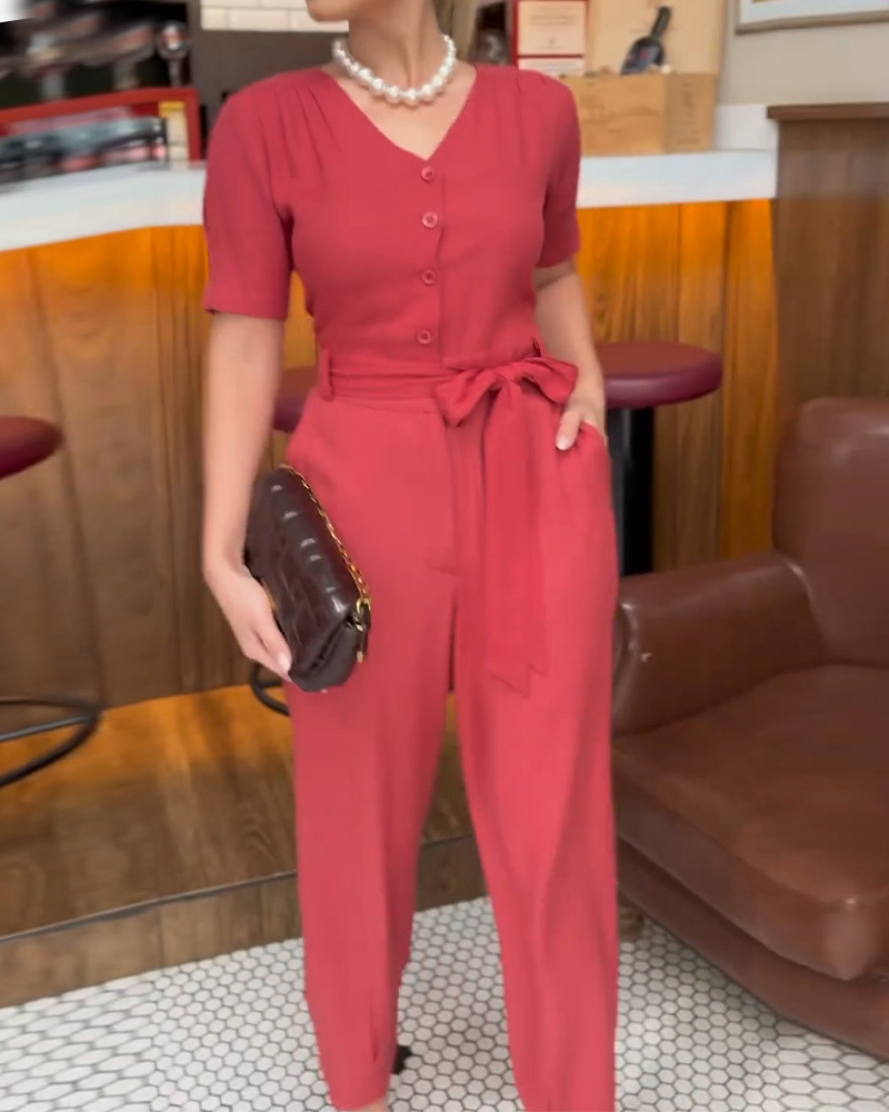 Product Name: V-neck Slim-fit Narrow-leg Jumpsuit