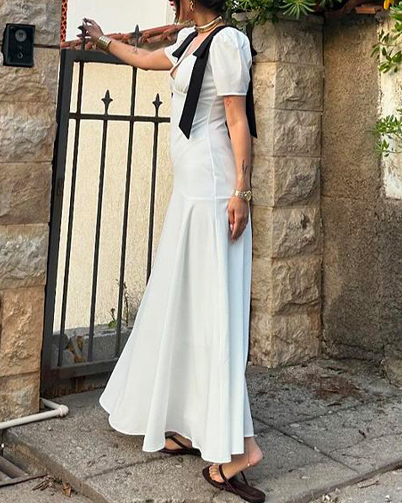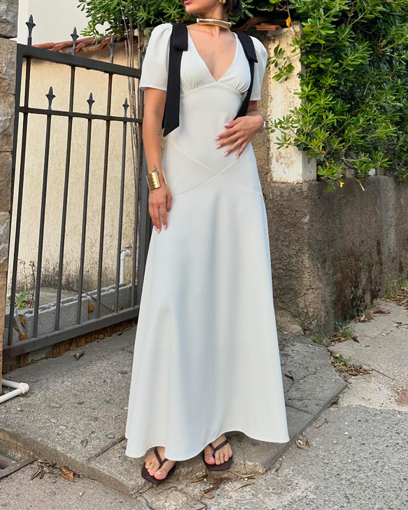 Elegant Solid Color Dress With Shoulder Ties