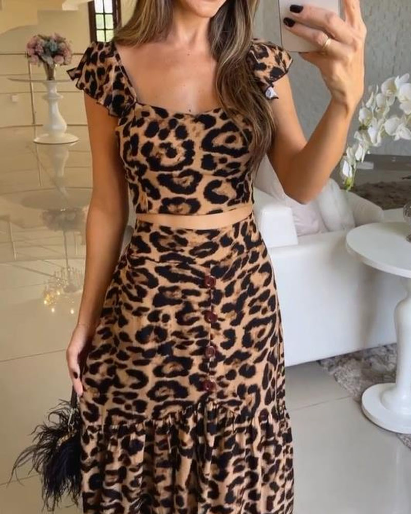 Leopard Print Top And Skirt Set